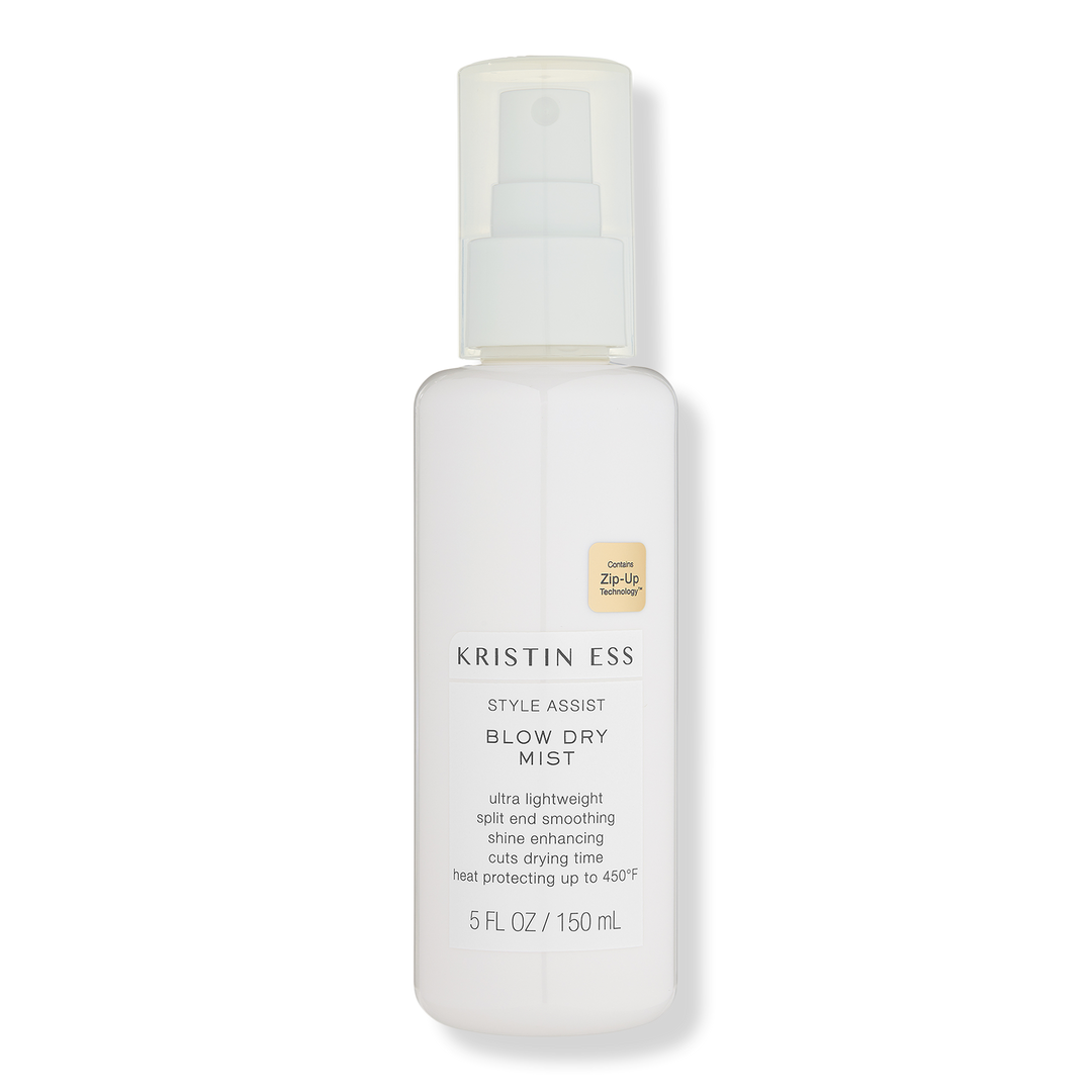 The Style Assist Blow Dry Mist - Hair Heat Protectant Spray from Kristin Ess Hair cuts down on drying time and adds epic shine while protecting hair against heat up to 450 F.