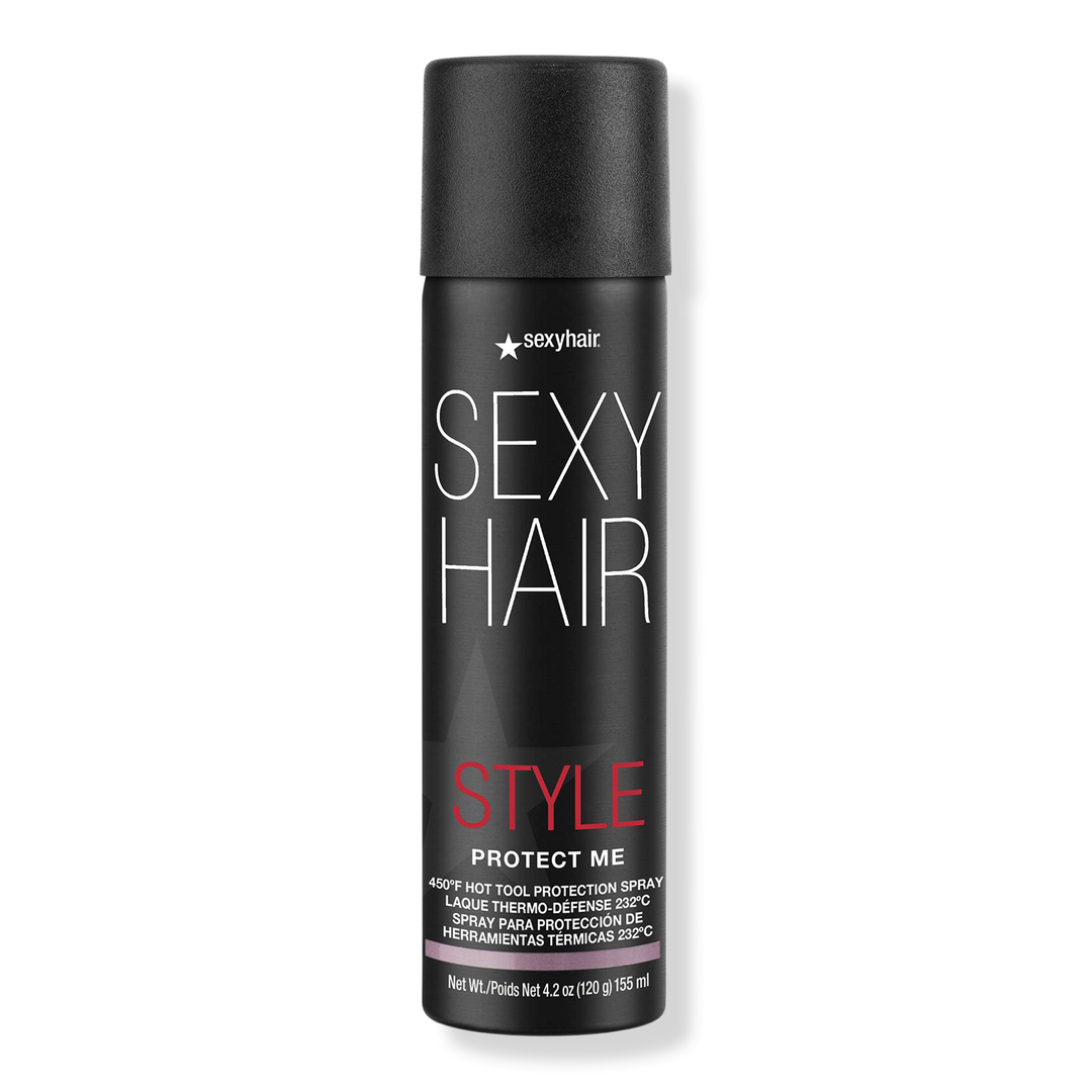 Style SexyHair Protect Me Hot Tool Protection Spray protects hair against heat up to 450 degrees F and reduces breakage up to 78%. Spray onto dry hair before heat styling for added shine and light hold. Great for all hair types.