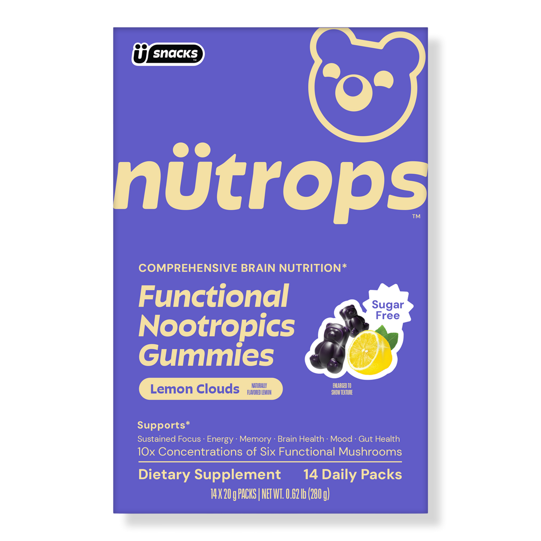 - Brain Support: Nütrops are formulated with six functional mushrooms to support cognitive health. The ingredients in these refreshing Lemon Marshmallow gummies support focus, memory, and energy.