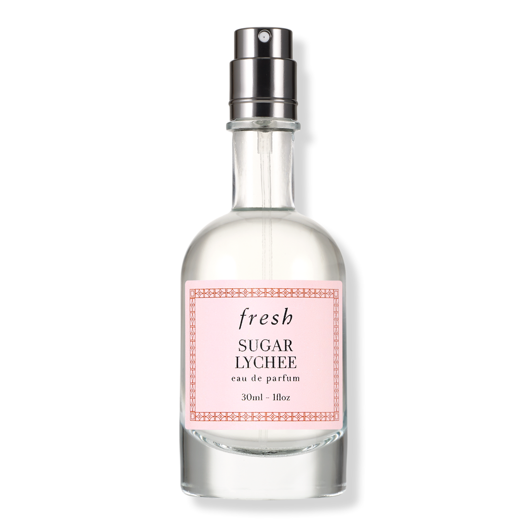 Find a serene moment to warm your soul with Fresh's Sugar Lychee Eau de Parfum Travel Spray, featuring a luscious and sweetened heart of fruity lychee. This warm, lightweight fragrance is infused with sandalwood and amber notes.