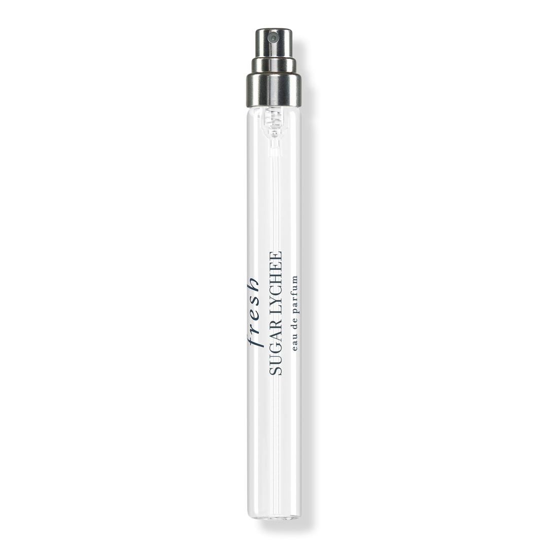 Find a serene moment to warm your soul with Fresh's Sugar Lychee Eau de Parfum Travel Spray, featuring a luscious and sweetened heart of fruity lychee. This warm, lightweight fragrance is infused with sandalwood and amber notes.