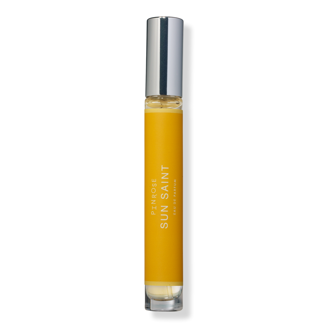 Pinrose Sun Saint Eau de Parfum Travel Spray is gentle waves of lime, sea salt and sun-warmed coconut wood.