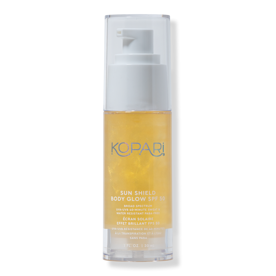 Kopari Beauty's Sun Shield Body Glow Gel SPF 50 provides strong sun protection and hydration. It's lightweight, applies on clear and dries down comfortably.