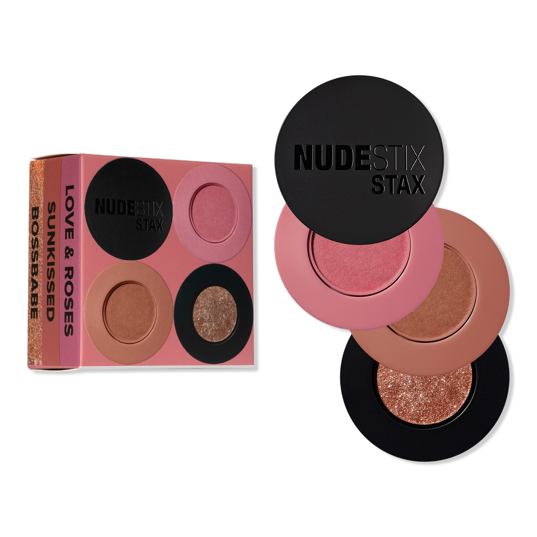 NUDESTIX Sunkissed Glow 3 Piece STAX Set is a three-piece magnetic multi-stacking & multi-tasking makeup compact set that you can create multiple makeup looks with for face, eyes and lips with two blurring, matte blush balms & one iridescent shade for a warm and sunny beachy bronzed complexion.