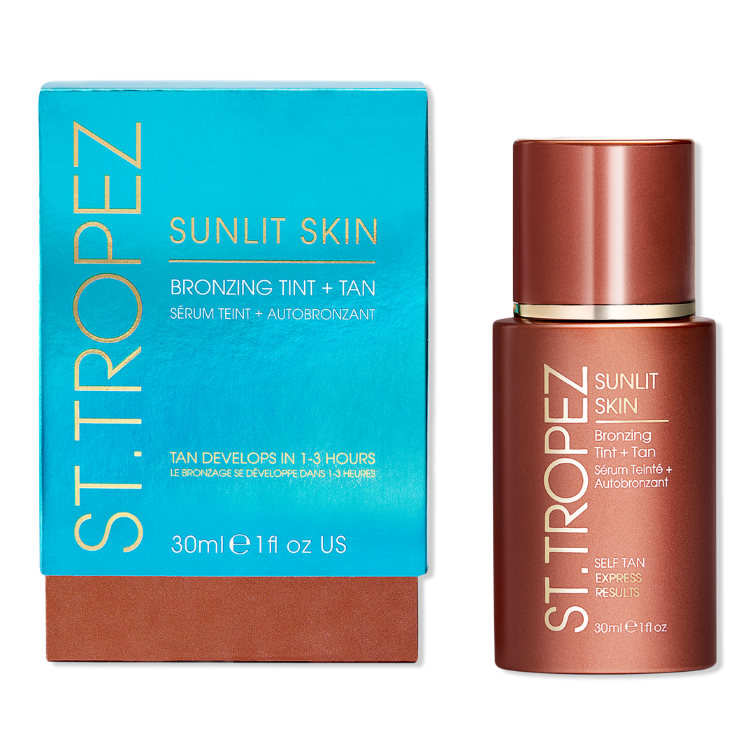 St. Tropez Sunlit Skin Bronzing Tint and Self Tan Serum delivers a sun-kissed glow in as little as 1 hour and a medium, natural-looking tan that fully develops in 3 hours. This ultra-fast development, no-rinse serum is the perfect base for bronzed, glowing skin.