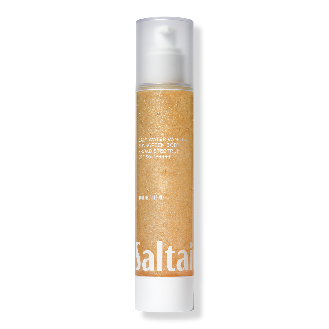 Saltair’s Sunscreen Body Oil Broad Spectrum SPF 50 PA++++ provides sunburn and photoaging protection while leaving the skin glowing.