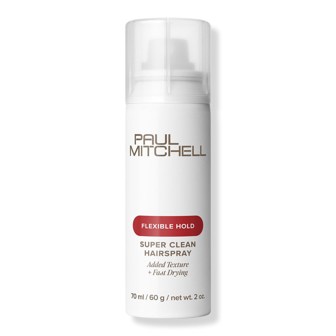 Create strong looks with Paul Mitchell Super Clean Hairspray. The lightweight hairspray adds fullness, texture and shine to hair with flexible hold.