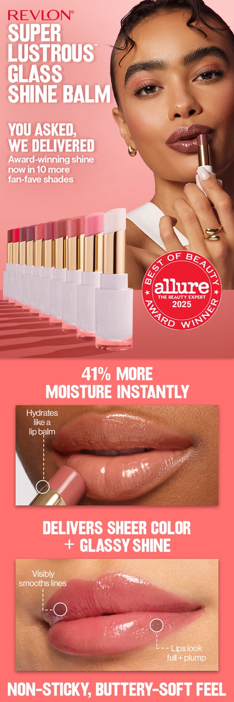 Revlon heard you. Now the viral sensation Super Lustrous Glass Shine Balm is back and better than ever! Same formula, new look. Delivers 41% more moisture instantly.