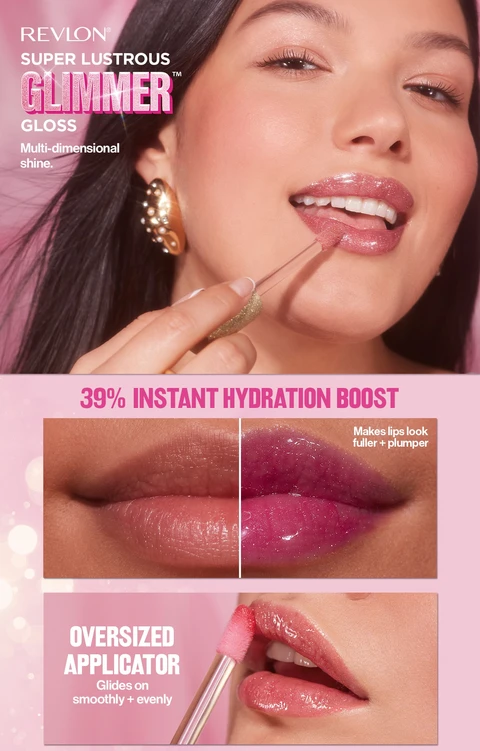 Revlon's Super Lustrous Glimmer Gloss is the first lip gloss made with plant-based glitter and light-refracting pearls for shimmering, multi-dimensional shine. Non-gritty, non-sticky feel.