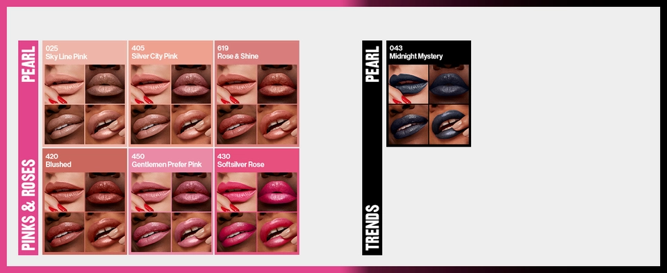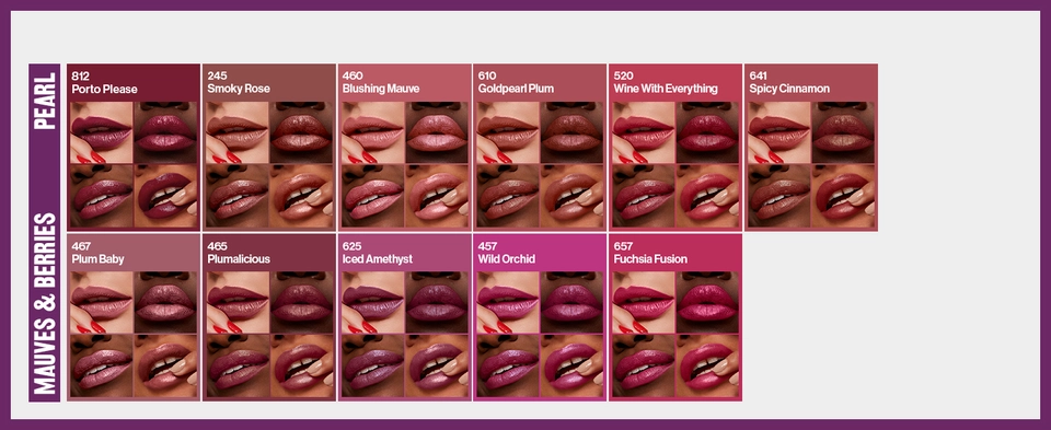 - There are over 130 ways to play with cool, classic and trendy shades ranging from nudes, pinks, reds, corals, browns, and purples