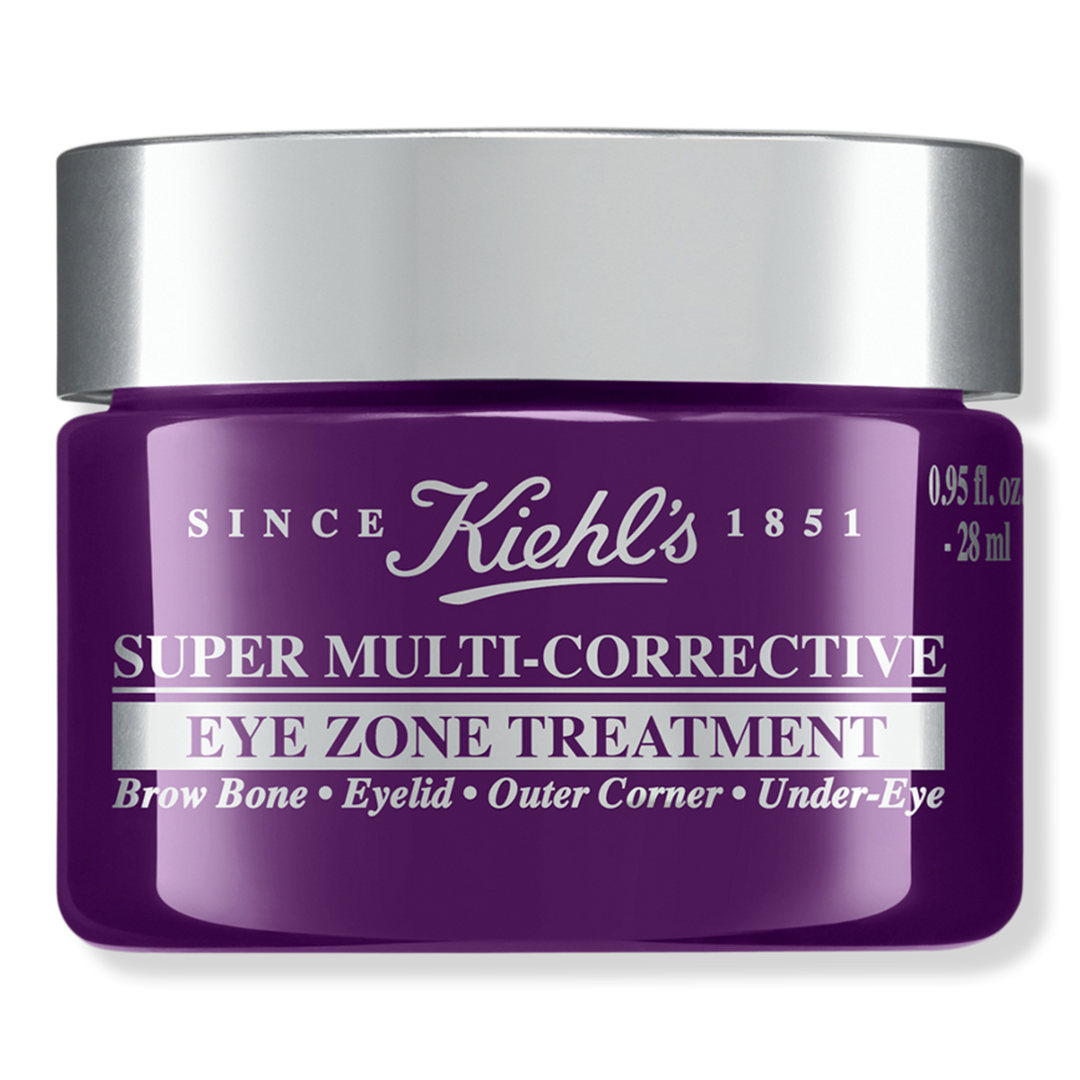 The Kiehl's Since 1851 Super Multi-Corrective Eye Zone Treatment is a cream that has niacinamide and collagen peptides that correct all four eye zones: brow bone area, eyelid, crow's feet & under-eye.
