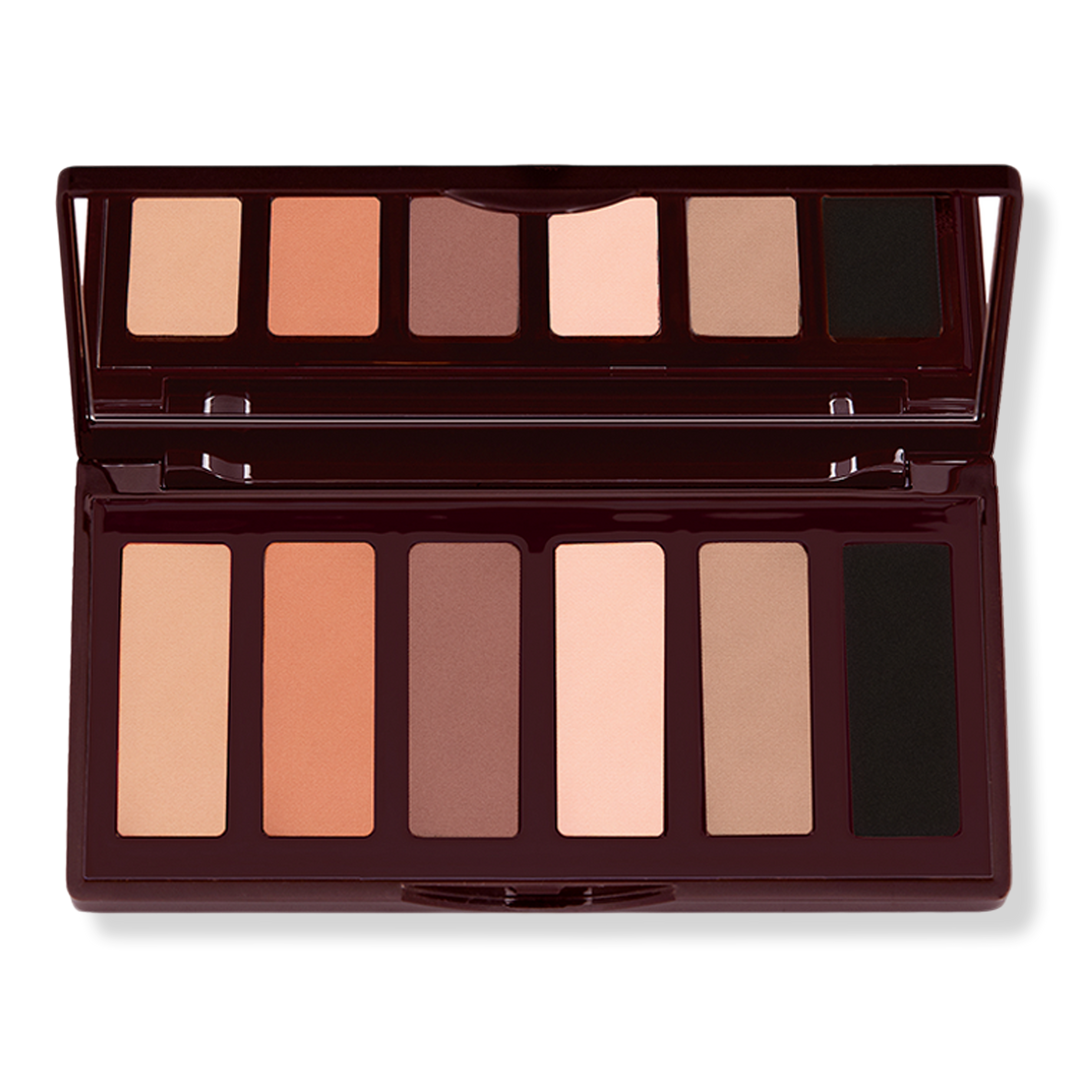 Charlotte Tilbury's Super Nudes Easy Eye Palette is a mini 6-shade nude eyeshadow palette with 2 easy-to-wear modern matte eye looks.