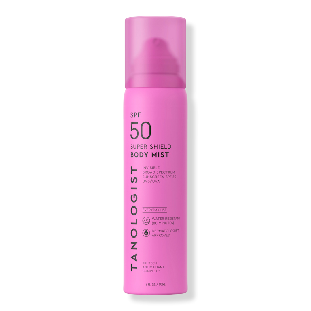 Tanologist Super Shield Body Mist SPF 50 delivers lightweight, non-greasy, broad spectrum UVA/UVB protection in an easy to use 360°, non-aerosol continuous mister. Its water and sweat resistant formula is perfect for the beach and outdoor activity.
