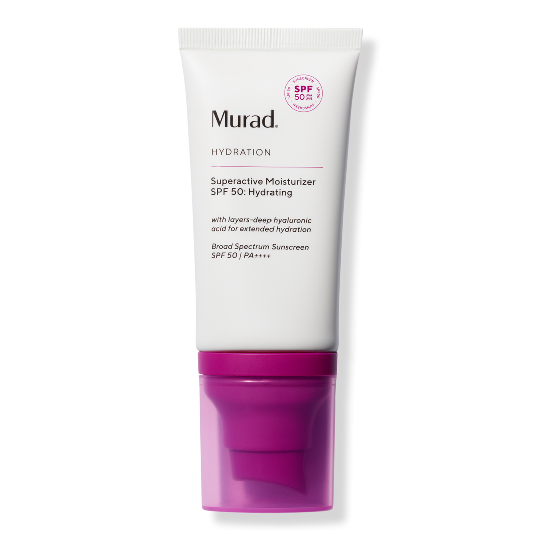 Murad's Deep-Hydration Moisturizer SPF 50 with Hyaluronic Acid delivers all-day hydration, leaving skin plump and bouncy, while providing high-level SPF 50 protection