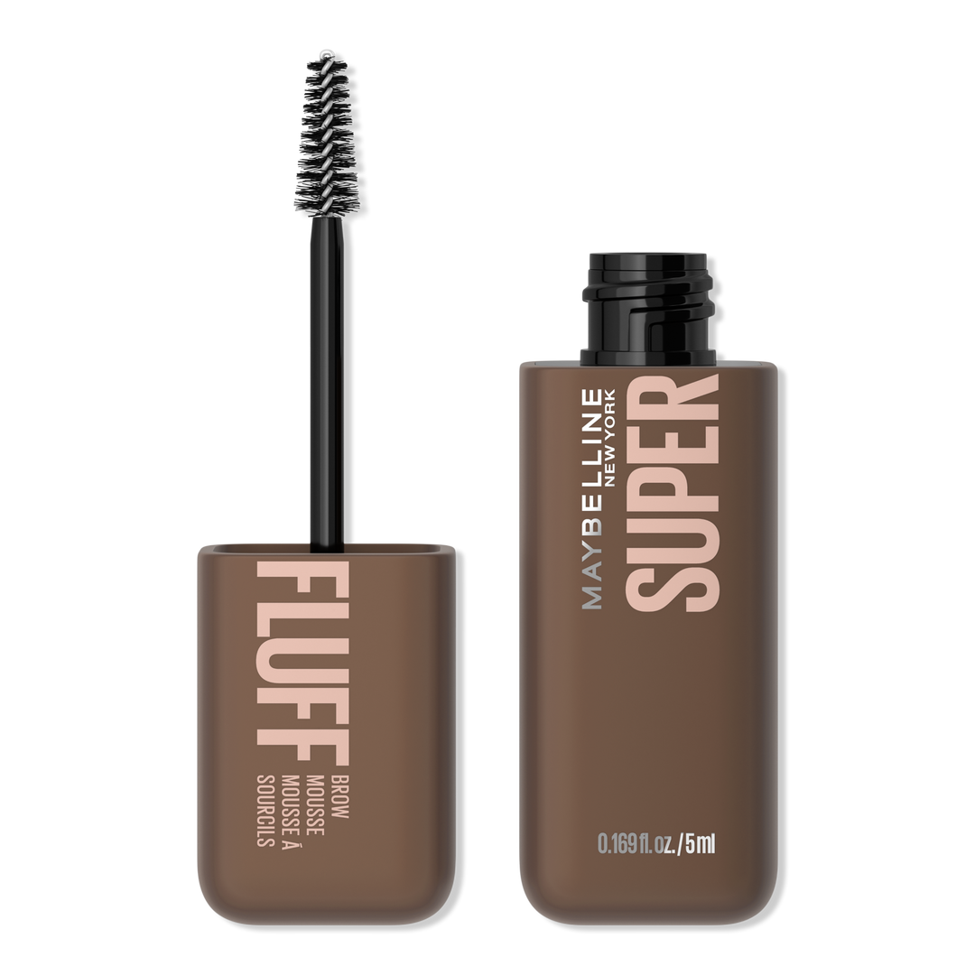 - Brows get fluffed with Maybelline's Superfluff Brow Mousse with a full look and soft feel that lasts all day!