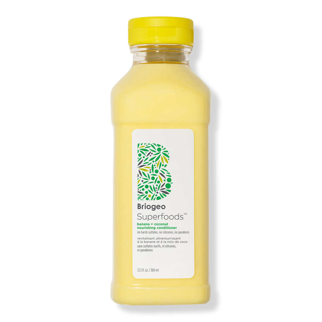 Briogeo's Superfoods Banana + Coconut Nourishing Conditioner is a nourishing, smoothie-inspired conditioner packed with vitamins, minerals, and nutrients to quench parched, dull strands and support healthy hair.