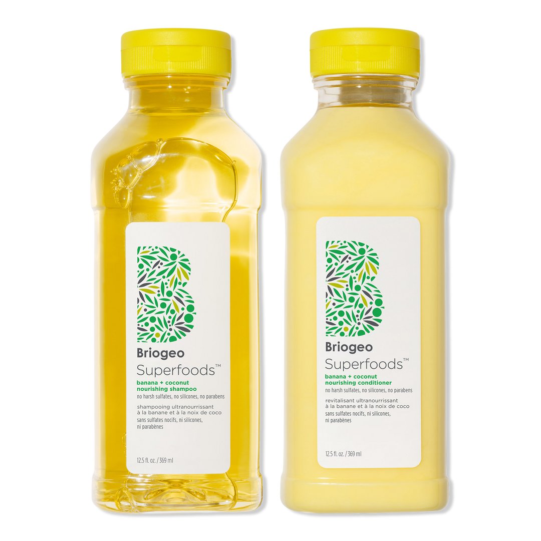 Superfoods Banana + Coconut Nourishing Shampoo + Conditioner Duo for Dry Hair has a nourishing, juice-inspired, sulfate-free shampoo and smoothie-inspired conditioner.