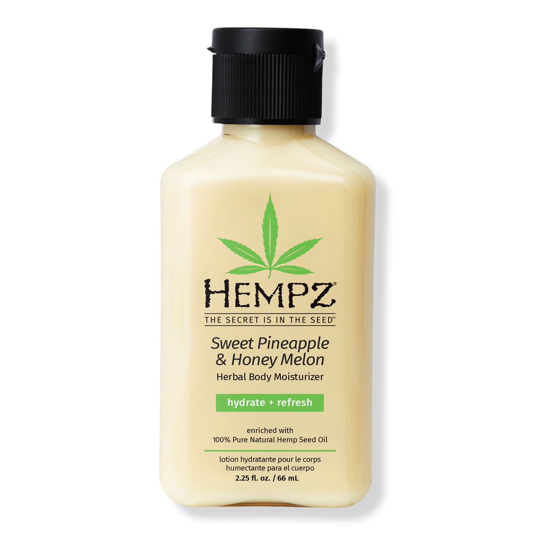 Smell like a vacation with Hempz Sweet Pineapple & Honey Melon Body Moisturizer! This ultra-light, fast-absorbing body lotion leaves your skin feeling hydrated and smooth. Infused with Pineapple Extract, Melon Extract, Hemp Seed Oil, and Shea Butter to help moisturize and soften the skin barrier.