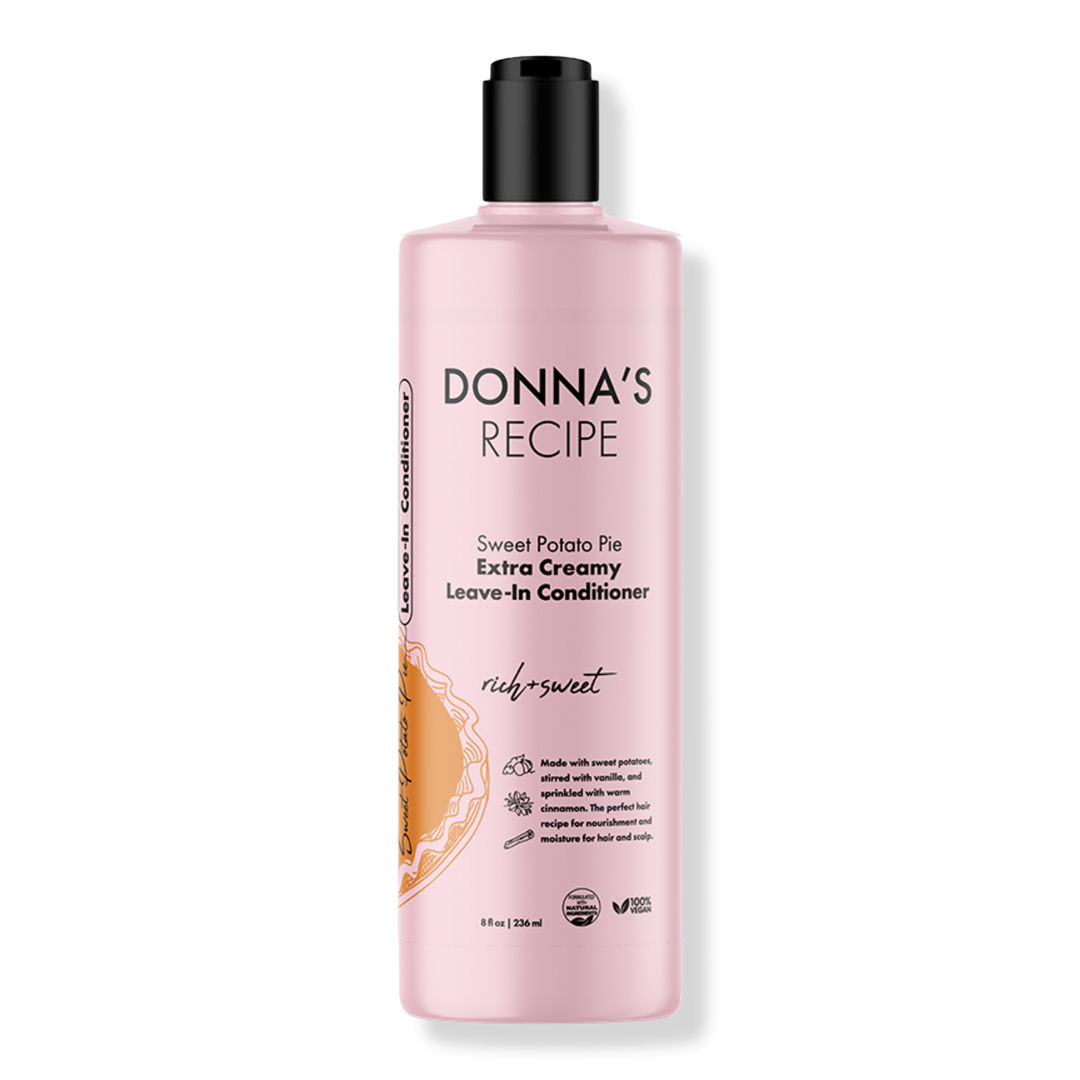 Get into Donna's Recipe made-in-heaven Sweet Potato Pie Extra Creamy Leave-In Conditioner. This creamy, rich, sweet aroma leave-in conditioner is sure to add goodness and joy to your hair care routine. This hair recipe is packed with nutrient-rich natural ingredients for moisture and hydration.