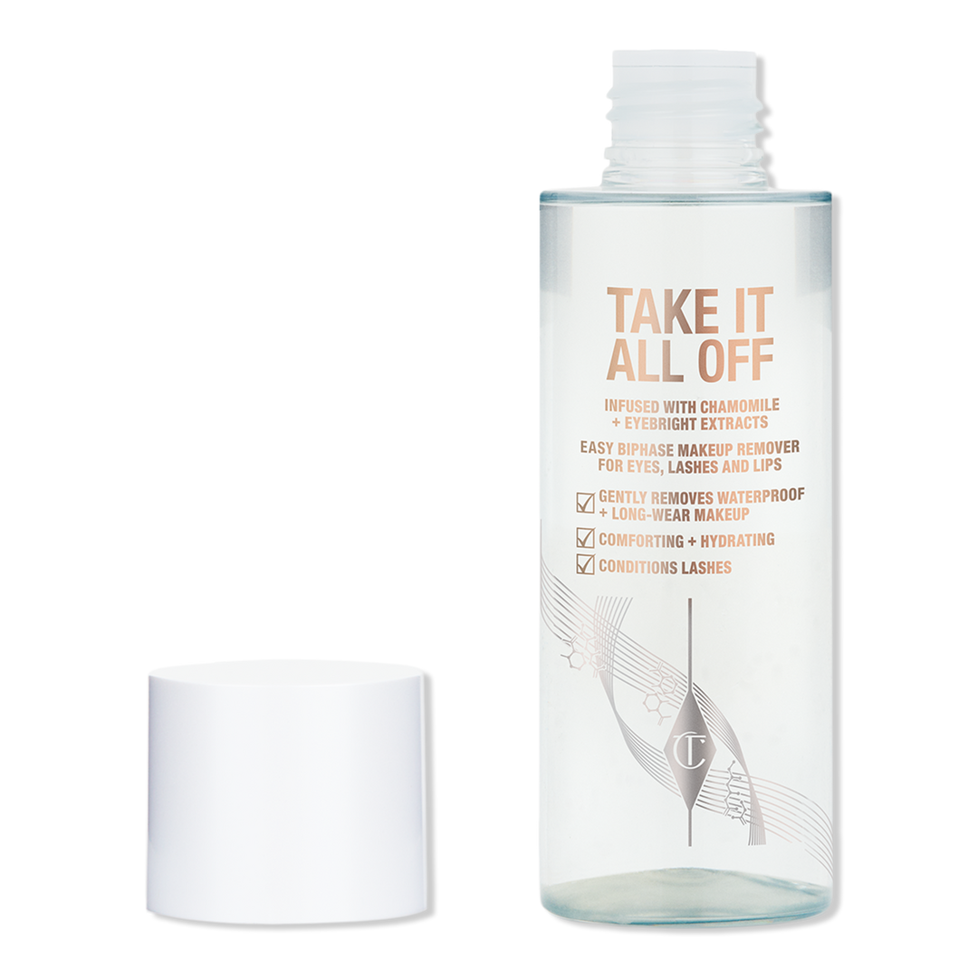 Charlotte Tilbury's Take It All Off Longwear Makeup Remover is a gentle, bi-phase formula for eyes, lashes, and lips that effortlessly removes long-wear and waterproof makeup.