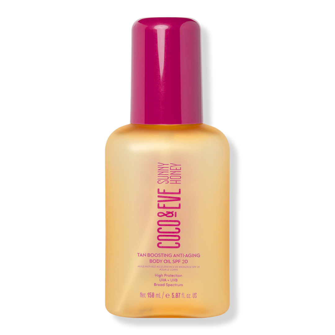 Get ready to glow with Coco & Eve Bali-inspired Tan Boosting Anti-Aging Body Oil SPF 20 sunscreen! This is a sunscreen oil with tan activating complex, iconic tropical mango and guava scent. Perfect your tan and protect your skin for a radiant, youthful tan all summer long.