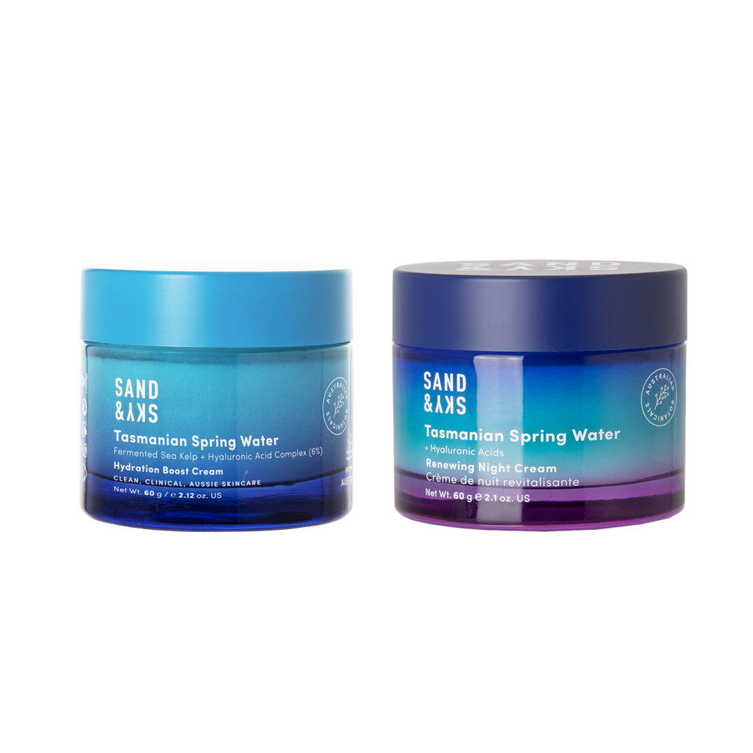 A day-to-night hydration duo infused with Tasmanian Spring Water. The Hydration Boost Cream delivers lightweight daytime moisture while the Renewing Night Cream repairs with Glacial Glycoproteins and 3 types of Hyaluronic Acid.