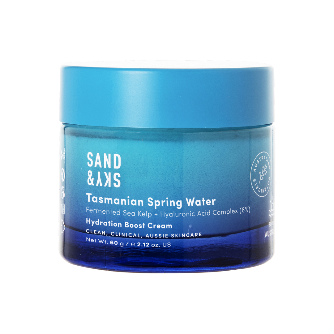 A deeply hydrating moisturiser infused with Tasmanian Spring Water and a 6% Hyaluronic Acid Complex that locks in lasting moisture. Red Algae forms a protective second skin to prevent dehydration while Fermented Sea Kelp strengthens and smooths.