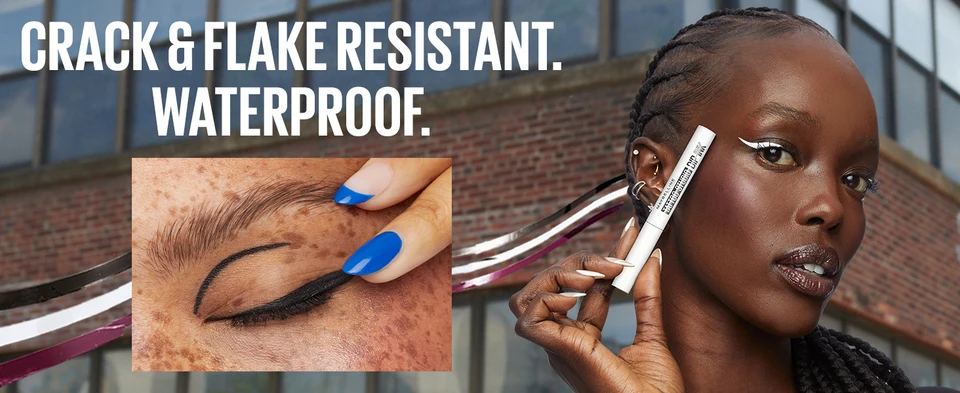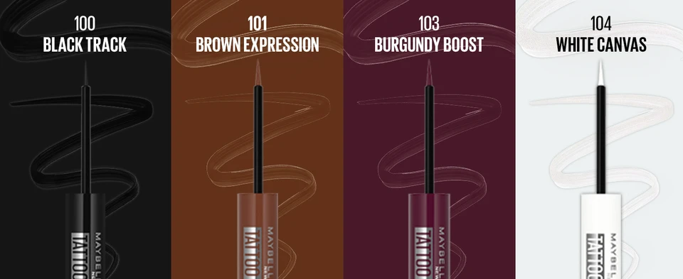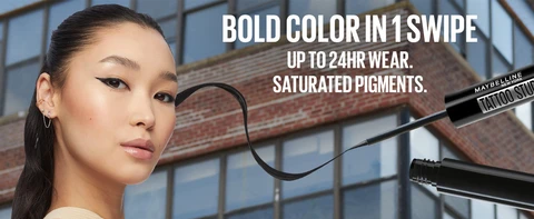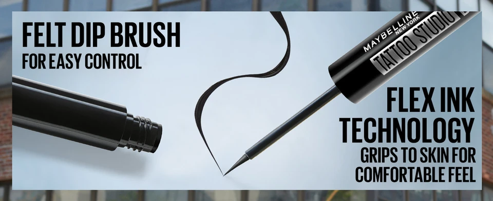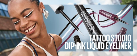 Express yourself with Maybelline Tattoo Studio Dip-Ink Liquid Eyeliner! 24hr wear, resists cracks & flakes. Mutiple saturated shades for bold looks.
