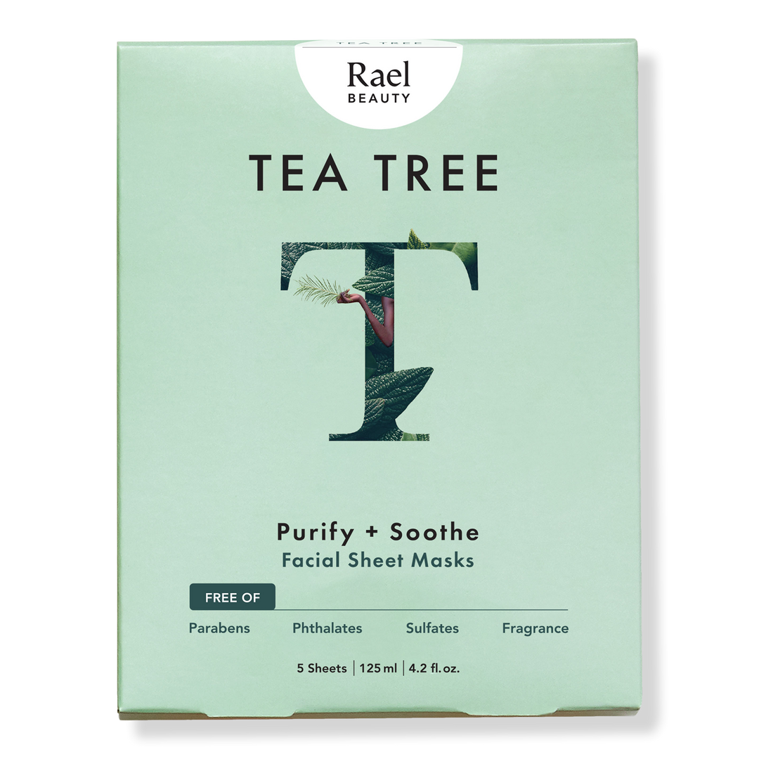 Rael's Tea Tree Sheet Mask instantly clarifies and soothes congested skin. Ultra-soft bamboo sheets are infused with almost an entire ounce of serum that works to clear and prevent clogged pores.
