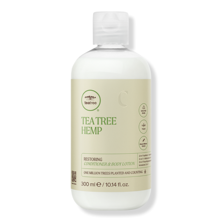 Paul Mitchell's Tea Tree Hemp Restoring Conditioner & Body Lotion helps restore and reinforce hair and skin in one simple step.