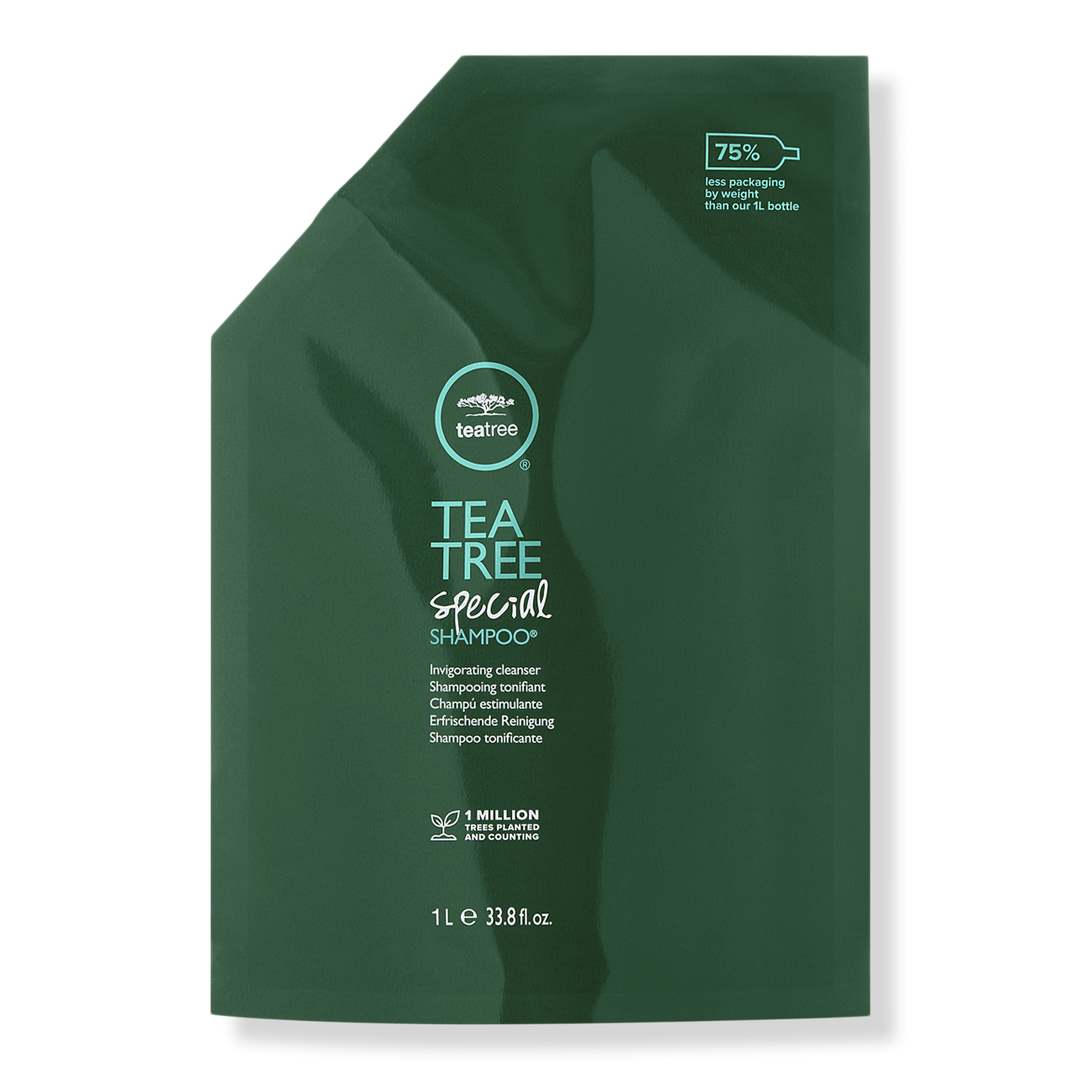 - Refill your existing Tea Tree Special Shampoo 33.8 fl. oz. bottles with liter refill pouches made with 30% post-consumer recycled (PCR) plastic