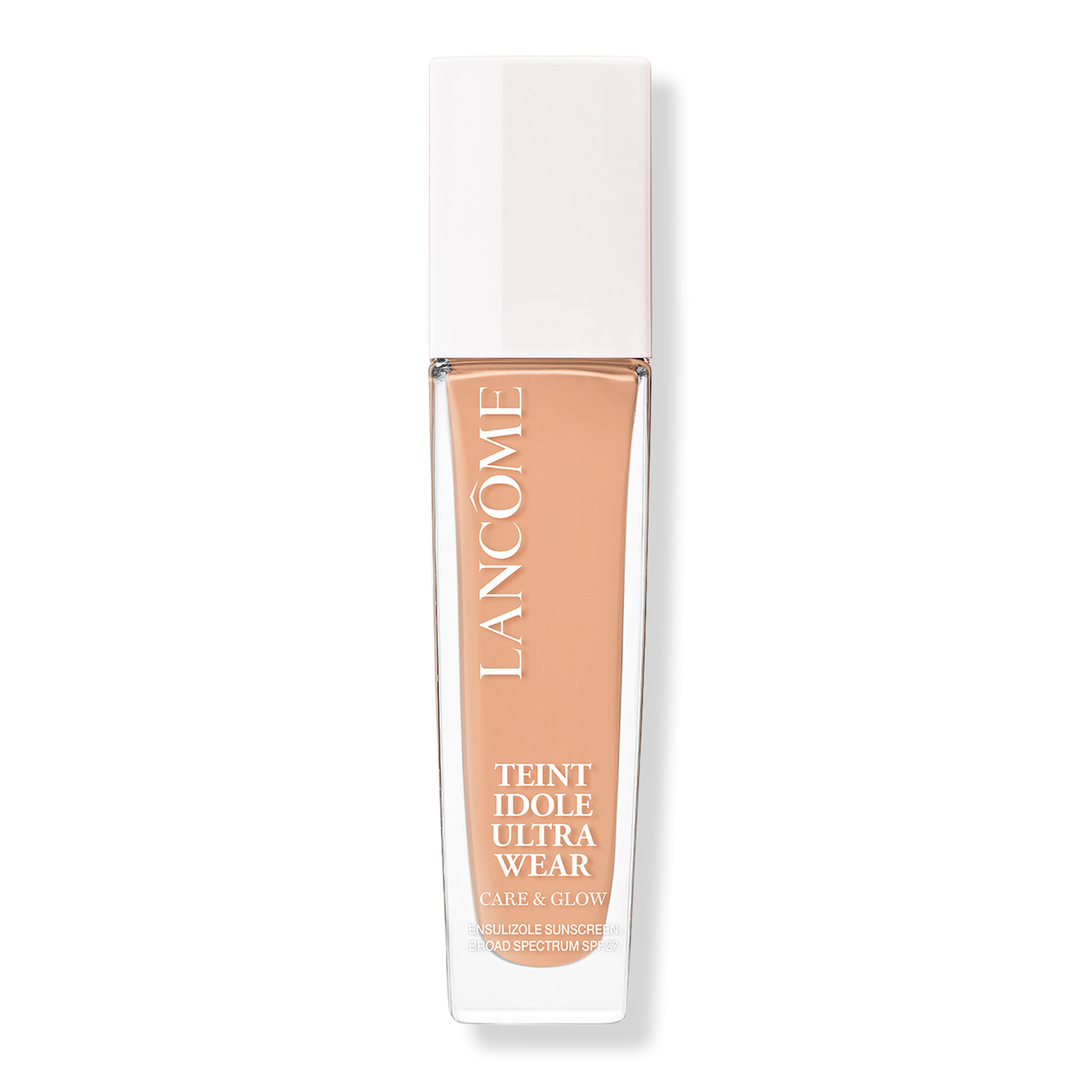 Lancôme Teint Idôle Ultra Wear Care and Glow Foundation is a 24-hour healthy glow liquid serum foundation with buildable medium coverage to hydrate and smooth skin for a natural glow finish.