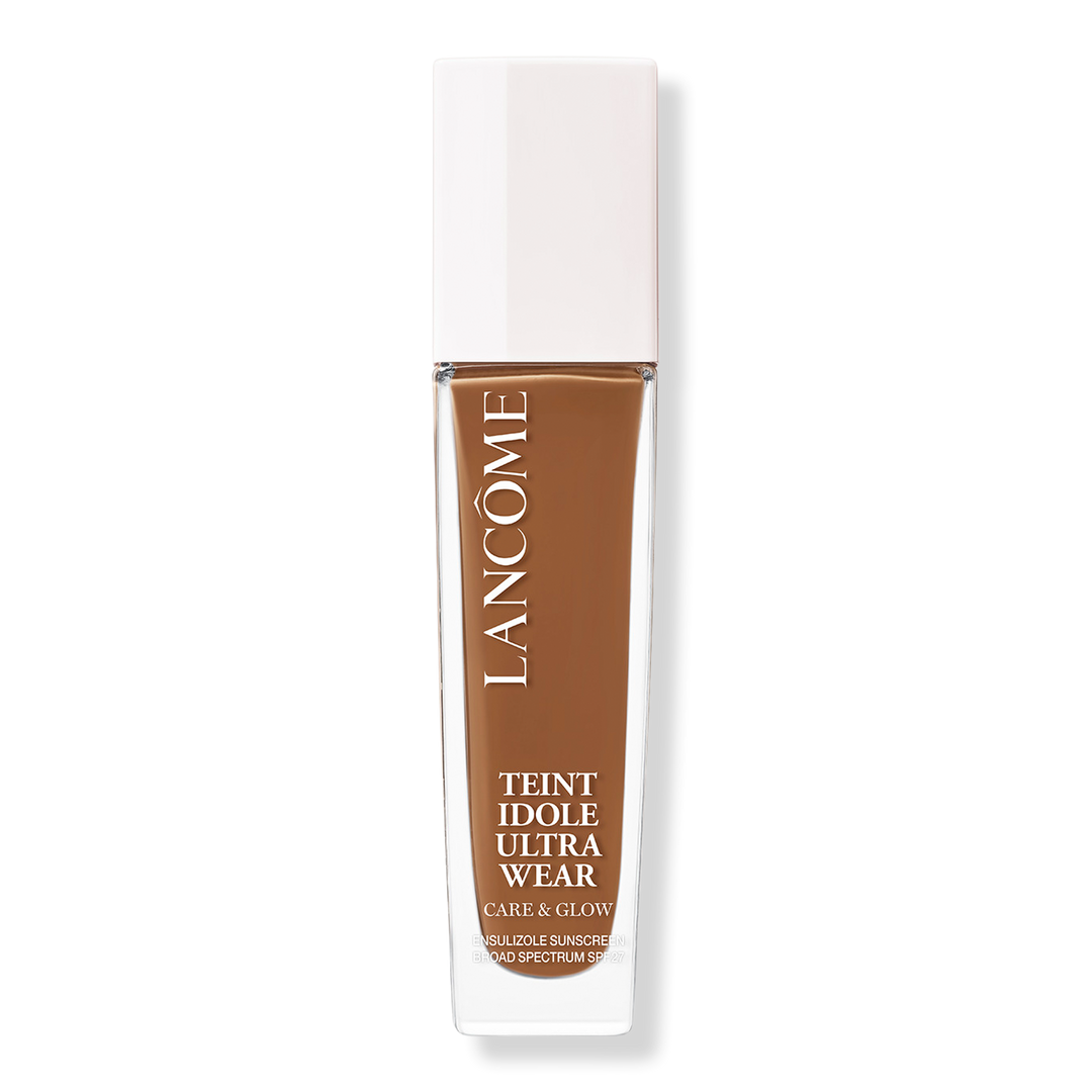 Lancôme Teint Idôle Ultra Wear Care and Glow Foundation is a 24-hour healthy glow liquid serum foundation with buildable medium coverage to hydrate and smooth skin for a natural glow finish.