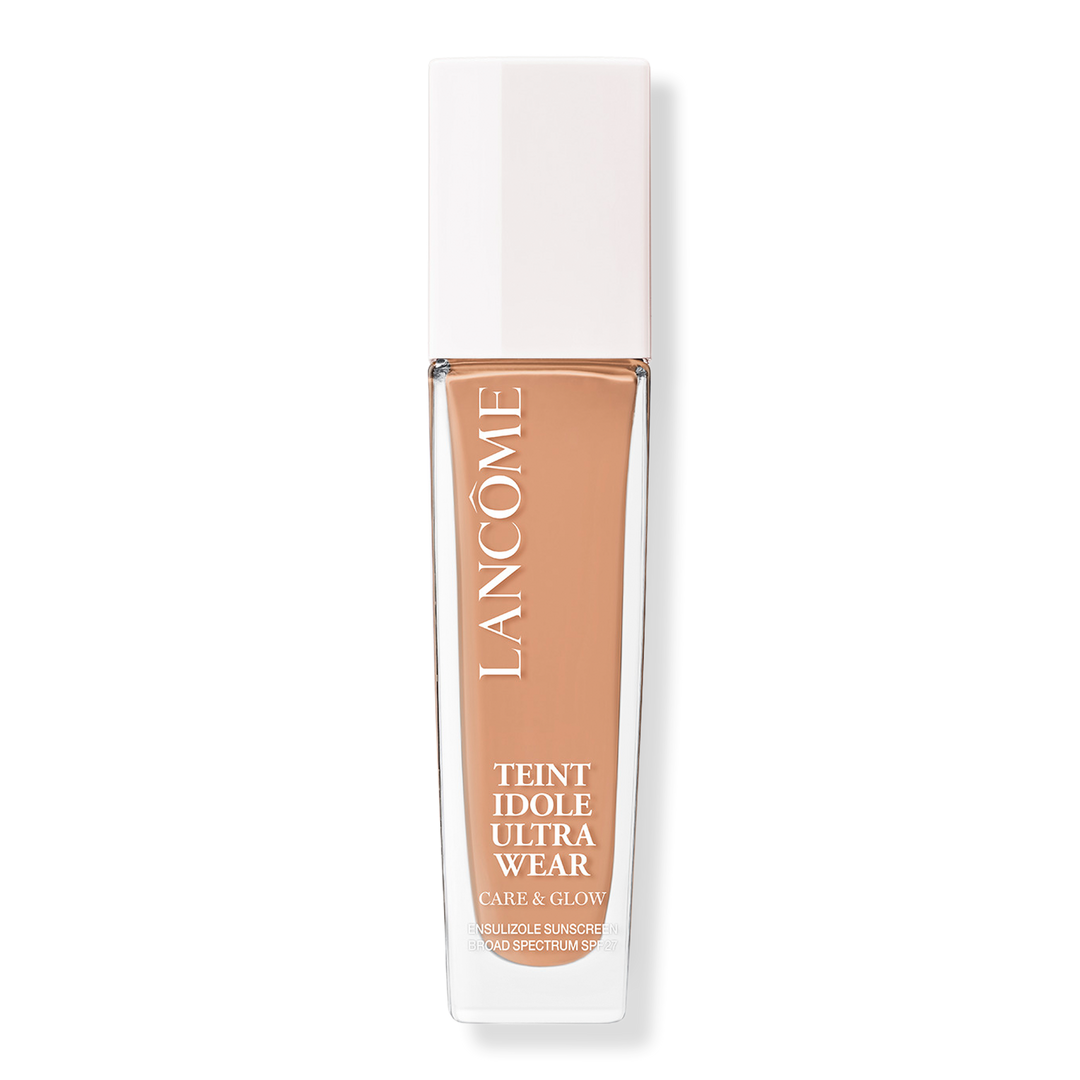 Lancôme Teint Idôle Ultra Wear Care and Glow Foundation is a 24-hour healthy glow liquid serum foundation with buildable medium coverage to hydrate and smooth skin for a natural glow finish.