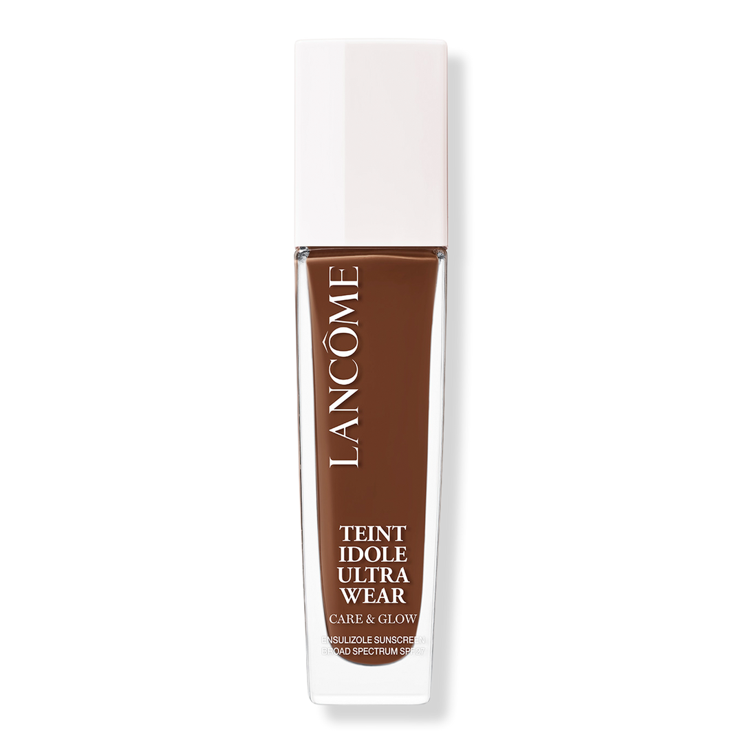 Lancôme Teint Idôle Ultra Wear Care and Glow Foundation is a 24-hour healthy glow liquid serum foundation with buildable medium coverage to hydrate and smooth skin for a natural glow finish.