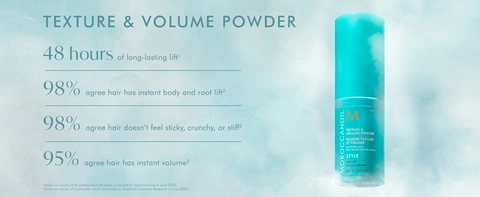 Moroccanoil Texture & Volume Powder is a non-aerosol dry styling powder that delivers instant volume and touchable texture. The lightweight formula works instantly on dry hair, providing buildable volume and flexible hold.