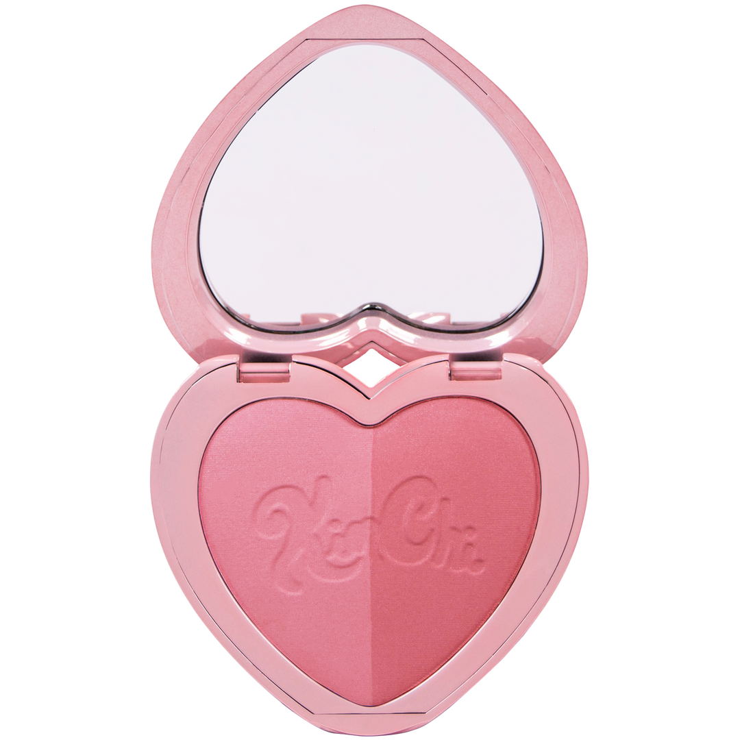 Blush like a goddess with this heart-shaped duo compact featuring two radiant shades. Wear them solo or swirl together for a custom third shade—three looks in one! Get that fresh, just-kissed flush with magical KimChi flair.