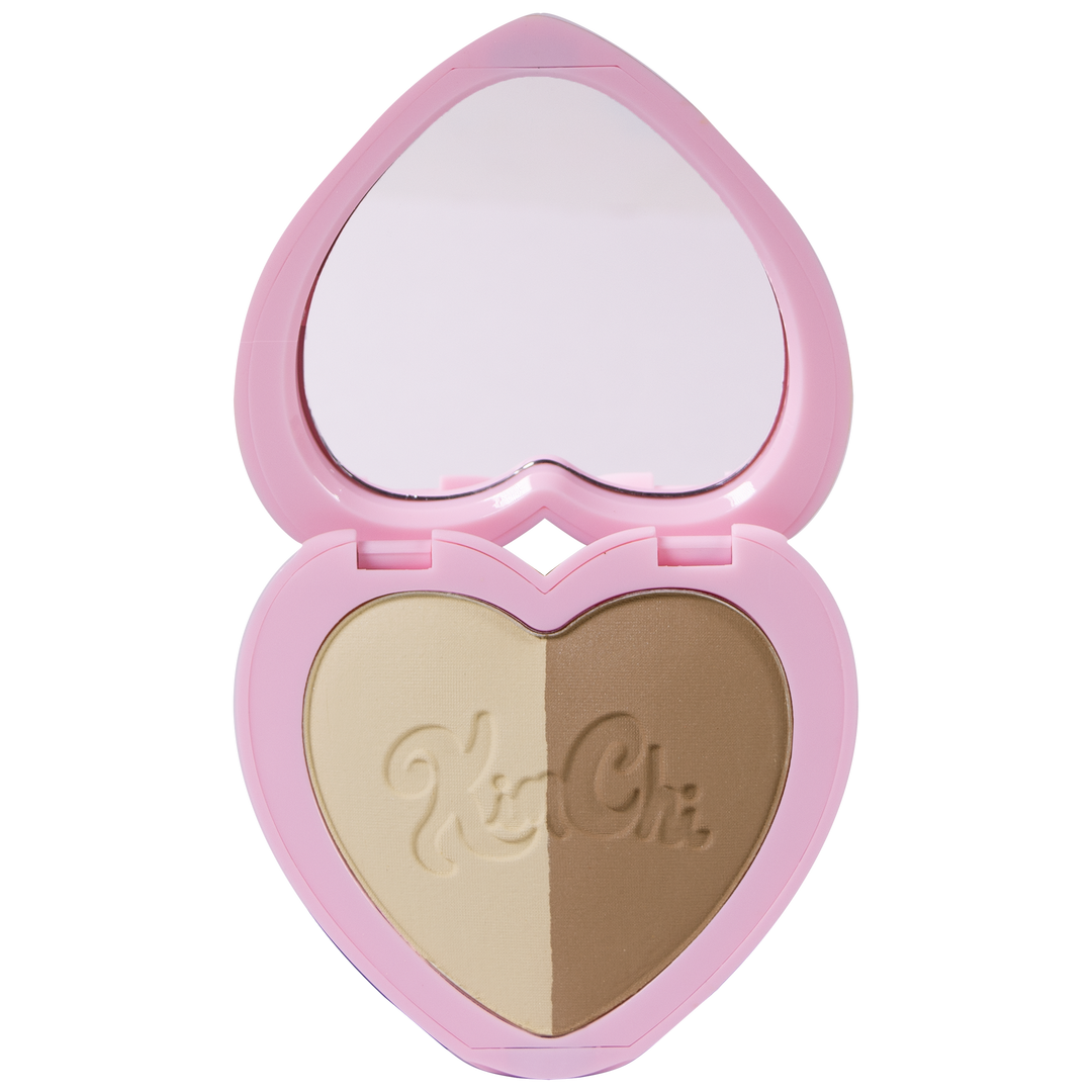 Sculpt, snatch, and slay with this heart-shaped duo compact featuring two contour shades. Wear them solo or blend for a custom third shade—three looks in one! Perfect for chiseling cheekbones, jawline, or nose for that magical KimChi transformation.
