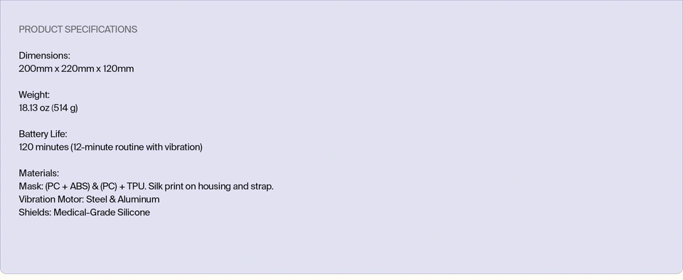 - Red + Infrared Light stimulates collagen production and firms skin