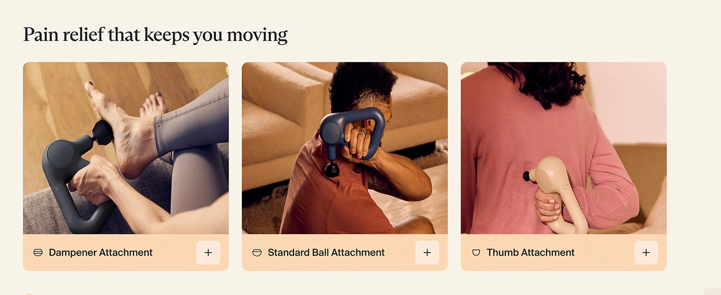 - 3 scientifically designed attachments to target different areas of the body: Dampener, Standard Ball & Thumb