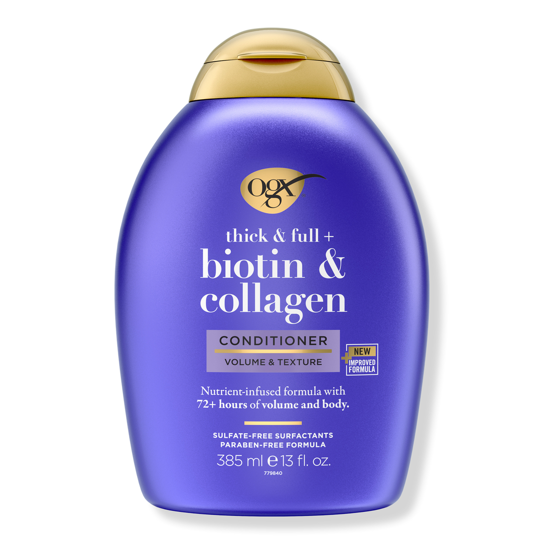 - OGX Thick & Full + Biotin & Collagen Volumizing Conditioner for hair with 72+ hours of volume & body