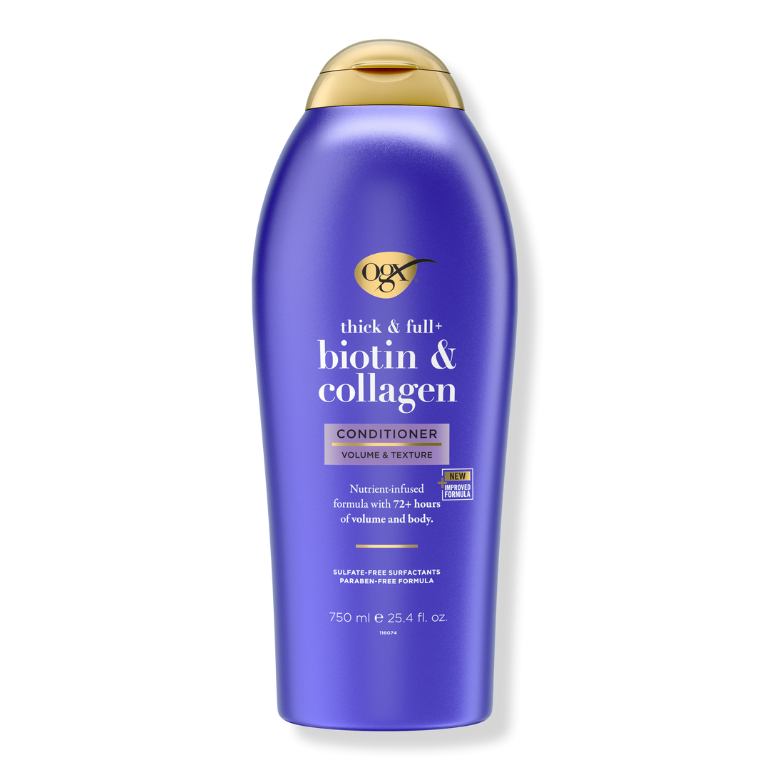 - OGX Thick & Full + Biotin & Collagen Volumizing Conditioner for hair with 72+ hours of volume & body