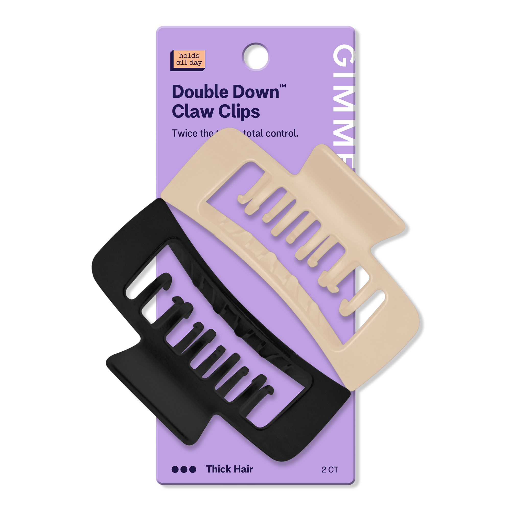 GIMME's Extra-Large Double Teeth Claw Clip is designed for all hair types, especially thick and long hair. Through extensive research, GIMME identified a common struggle among women: finding a claw clip that securely holds all their hair. GIMME has added extra teeth to prevent hair from slipping.