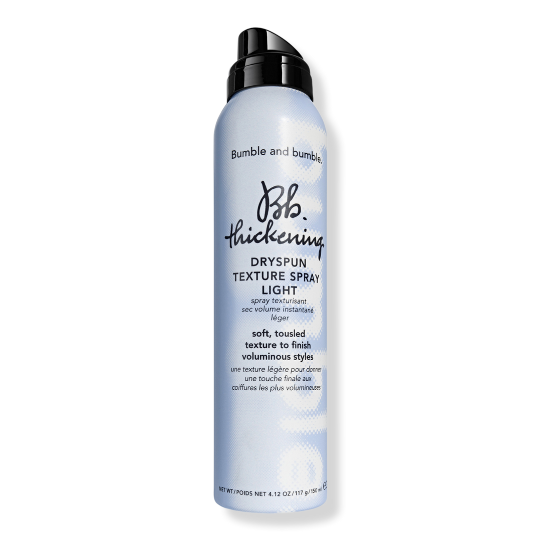 Bumble and bumble's Thickening Dryspun Texture Spray Light is a translucent texturizing spray for soft, airy, tousled texture look that gives airy dimension and flexible movement. This lighter take on the Bb. Pro-fave is ideal for medium to thick hair that craves texture (but likes it soft).