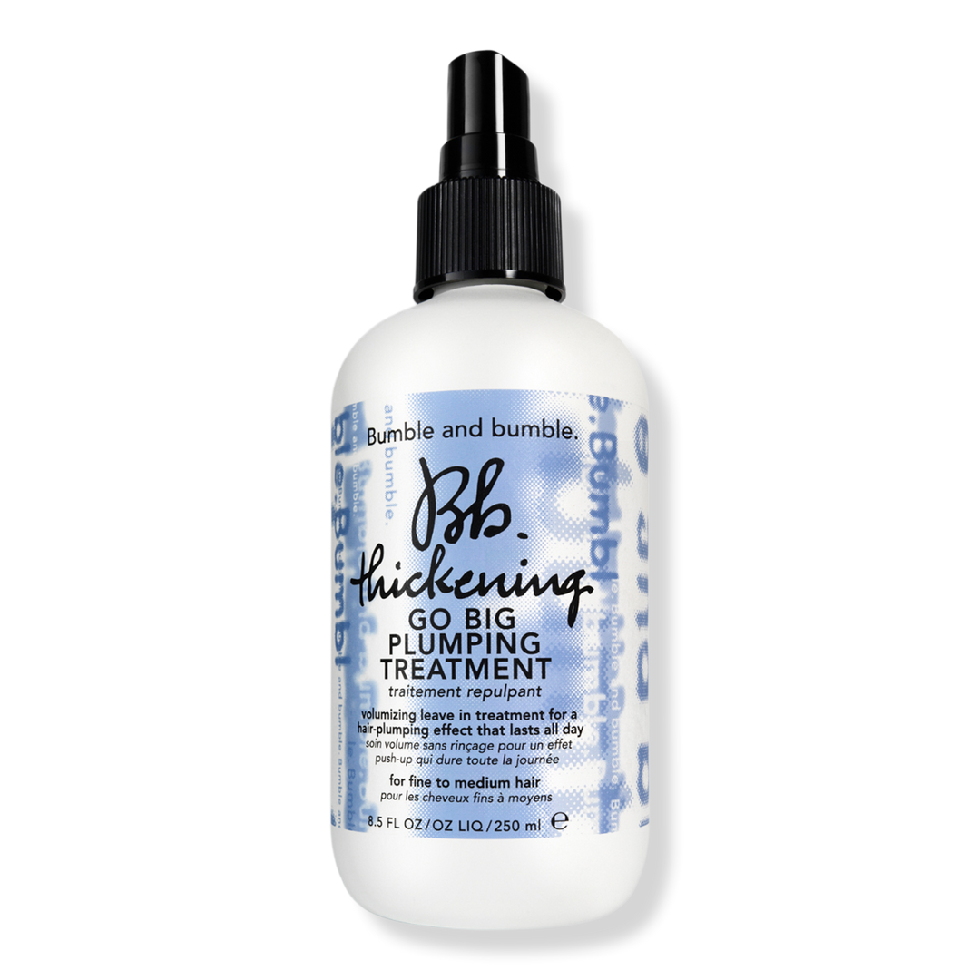 Bumble and bumble's Thickening Go Big Plumping Hair Treatment is a hair thickening leave-in treatment for air-dried or blow-dried styles. This hair treatment provides all-day frizz reduction and heat protection.