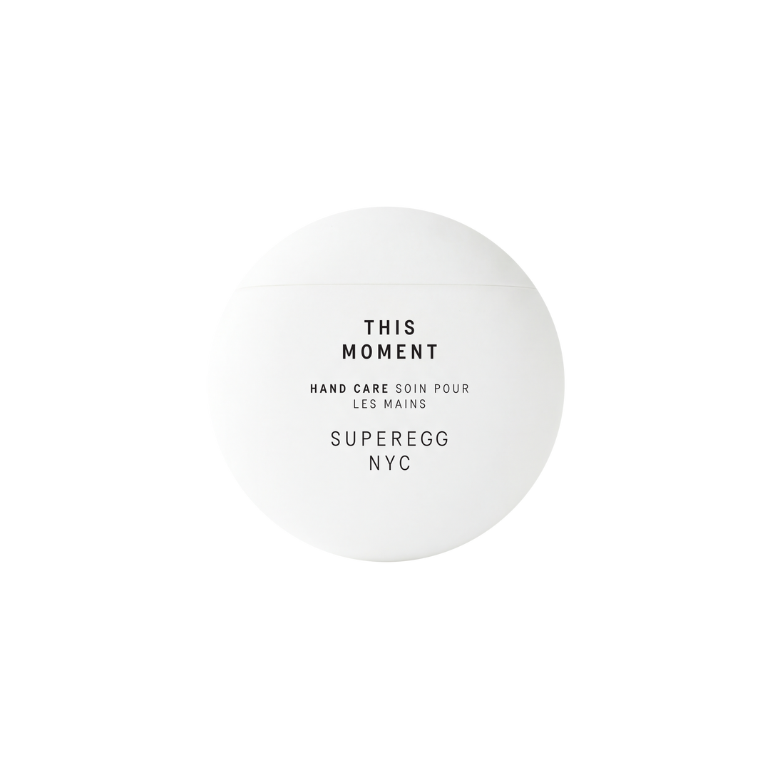 Superegg's This Moment Hand Care is an indulgent yet fast-absorbing hand cream to replenish dry skin, smooth texture, and provide a calming sensorial moment. Infused with botanical oils and antioxidant actives to support even tone and long-term resilience.