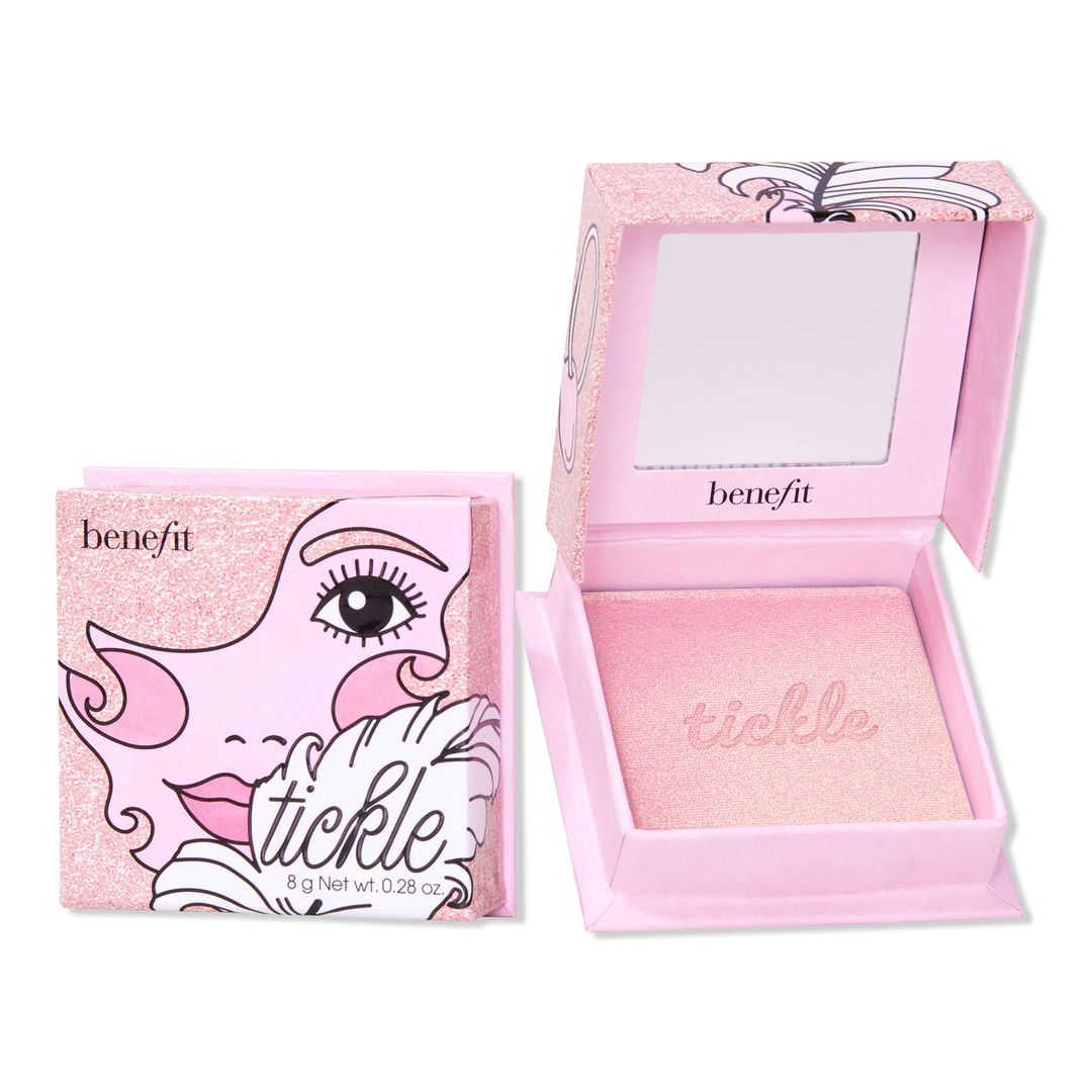 Tickle me pink! Amp up your radiance with an irresistible golden pink luster. Benefit's Tickle Golden Pink Powder Highlighter is superfine & buildable for a total gleam come true. Your cheeks will look luminous & tickled pink, so you can giggle as you glow!