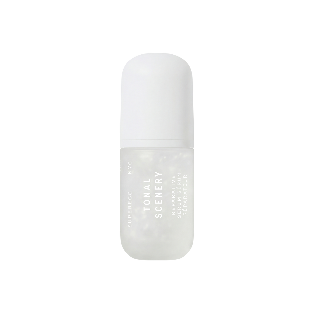 Superegg’s Tonal Scenery Reparative Serum is a restorative treatment that strengthens skin resilience while visibly improving tone and texture. Powered by peptides, pre/pro/postbiotics, and soothing actives, micro-capsules melt into skin to deliver targeted nutrients where they’re needed most.