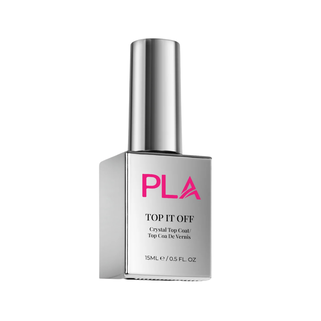 Finish off your gel manicure with PLA's Top It Off Gel Top Coat. This high-performance, LED-cured formula delivers a flawless, no-wipe, high-shine finish while locking in color and helping prevent dulling, chipping, and yellowing.