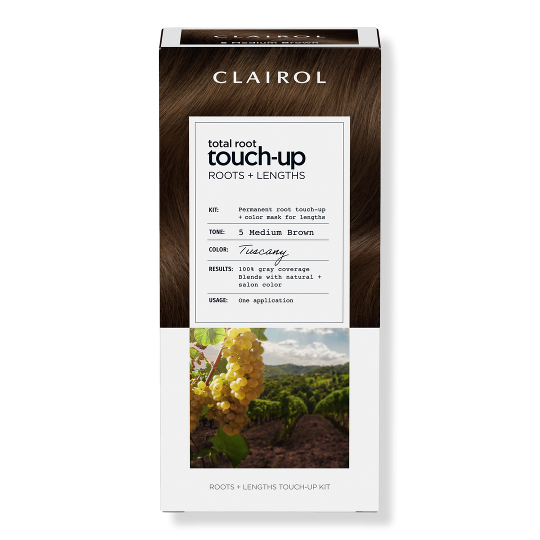 Spend more time exploring the world, less time worrying about your roots! With Clairol Total Root Touch-Up color for roots + color mask for lengths, get 100% gray coverage and refreshed color between salon visits.